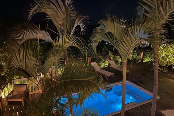 The villa has three spacious and elegant en-suite bedrooms, fully air-conditioned to ensure peaceful nights. Each bedroom has its own private bathroom, one of which features an outdoor shower, allowing you to enjoy a moment of freshness in perfect connection with nature. Outside, the large hot tub, nestled in the heart of a lush tropical garden, becomes a sanctuary of absolute relaxation, where crystal-clear water blends with exotic vegetation and ocean spray.
